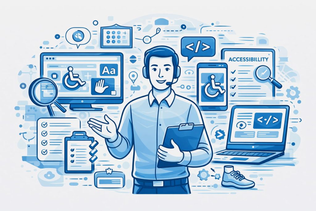 התפקיד שלו: מומחה טכנולוגי שמתמחה בכתיבת קוד נגיש (HTML, ARIA, JS). הוא זה שמתקן את "מאחורי הקלעים" של האתר כך שקוראי מסך יוכלו לקרוא אותו והניווט במקלדת יהיה מושלם.